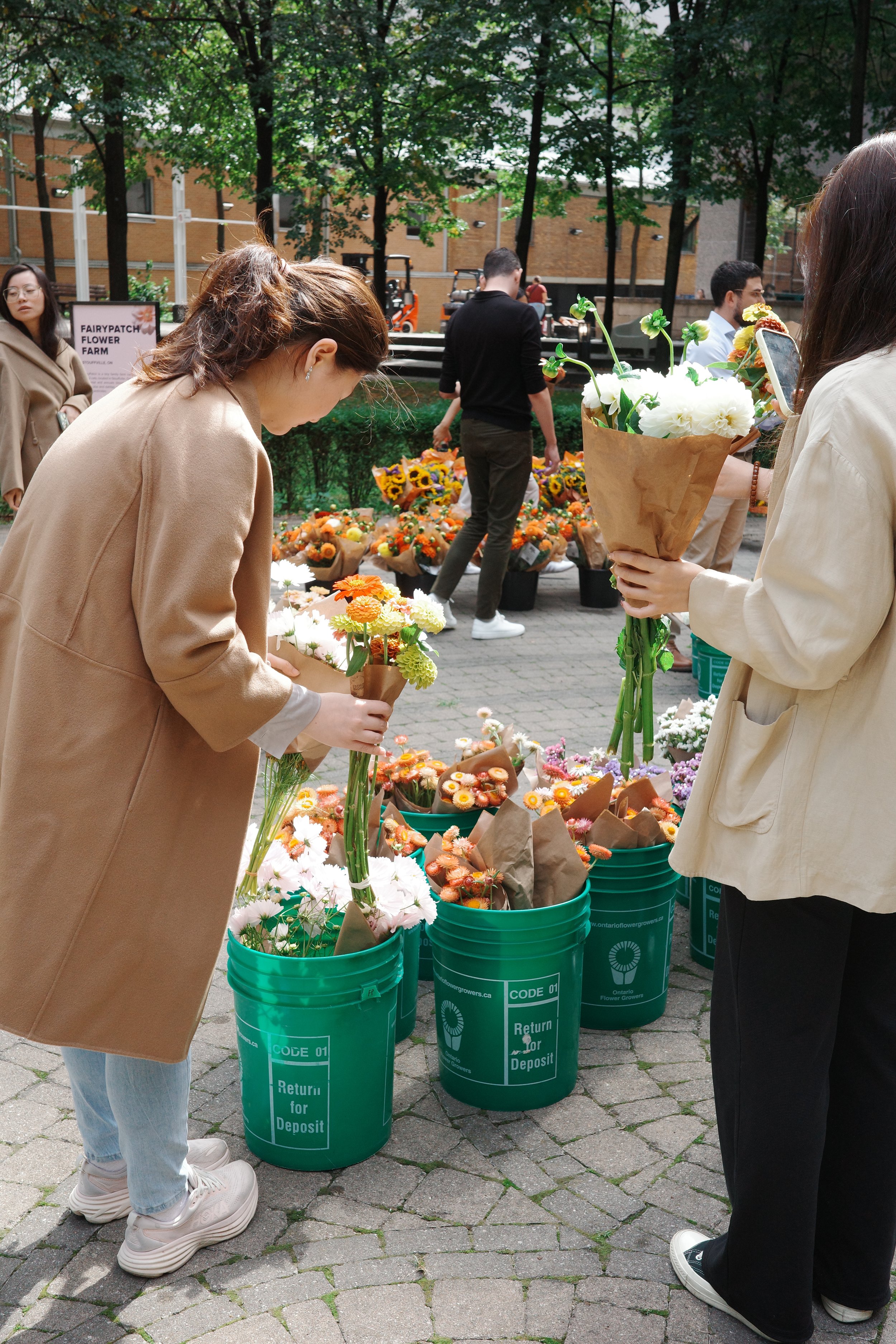 What began as a single pop-up in the TD Centre courtyard in September 2024 has since blossomed into a continued celebration of local flowers and community care. In partnership with Cadallic Fairview, the initiative expanded in 2025 to include three flower bucket shops across CF buildings (Toronto Eaton Centre, 160 Front & TD Centre) featuring blooms from 11 Toronto Flower Market vendors and more than 750 buckets of Ontario-grown flowers.